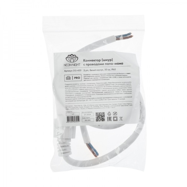 Купить Аксессуар для гирлянды Коннектор (шнур) с проводами папа-мама, 2 pin, белый каучук Неон-Найт в Москве или заказать с доставкой по России можно на нашем сайте СинтезБезопасности.ру. Здесь вы найдете описание, фото, технические характеристики и цену на Коннектор (шнур) с проводами папа-мама, 2 pin, белый каучук NEON-NIGHT.