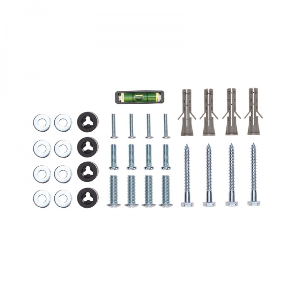 В комплекте поставляются все необходимые универсальные крепления для монтажа, а также строительный (пузырьковый) уровень.