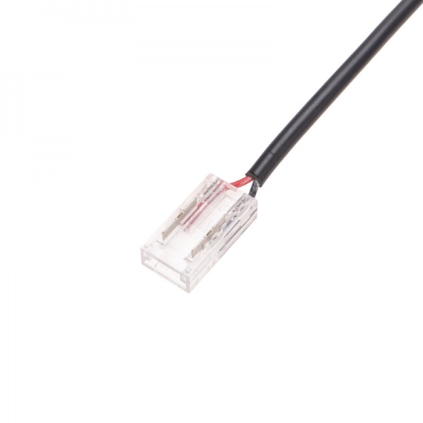Коннектор – это устройство, предназначенное для обеспечения электрического соединения между блоком питания и одноцветной светодиодной лентой COB шириной 8 мм.