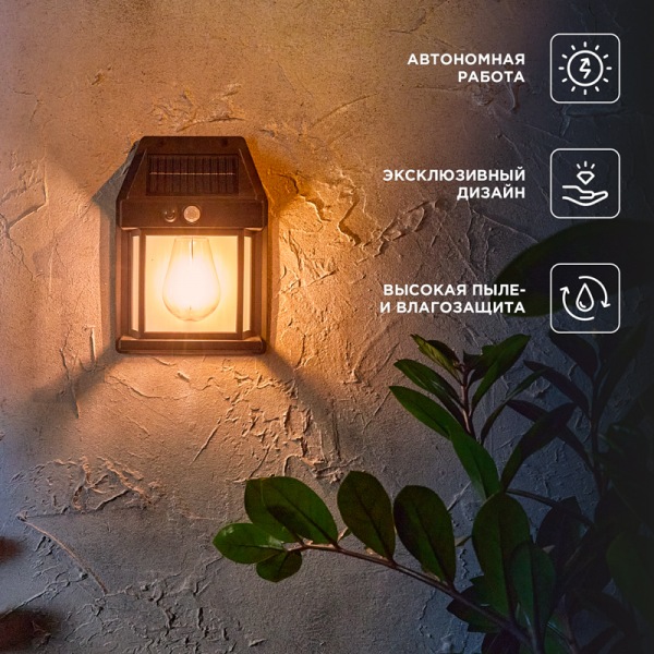 Накопленная энергия хранится во встроенном аккумуляторе, что позволяет светильнику автономно функционировать около 6-8 часов и освещать окружающую территорию вечером и ночью, не требуя подключения к электросети.