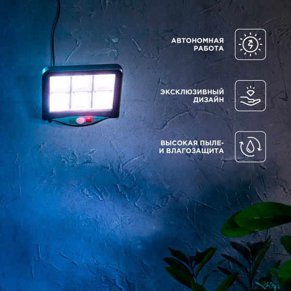 Накопленная энергия хранится во встроенном аккумуляторе, что позволяет светильнику автономно функционировать около 6-8 часов и освещать окружающую территорию вечером и ночью, не требуя подключения к электросети.