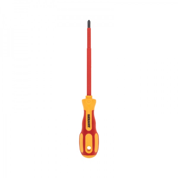 Стержень отвертки, выполненный из высококачественной хромованадиевой стали, покрыт специальным изоляционным материалом и оснащен оксидированным намагниченным наконечником.