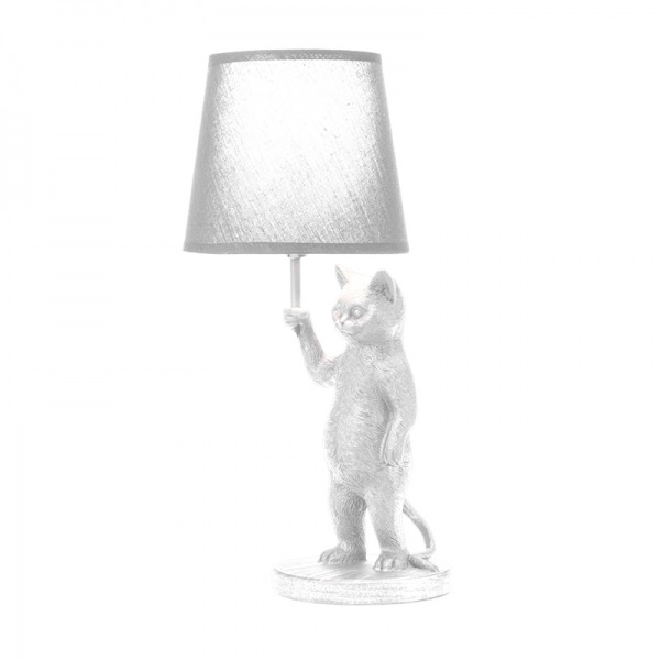 Белый светильник с основанием в виде кота – неповторимый предмет декора для дома и уюта.