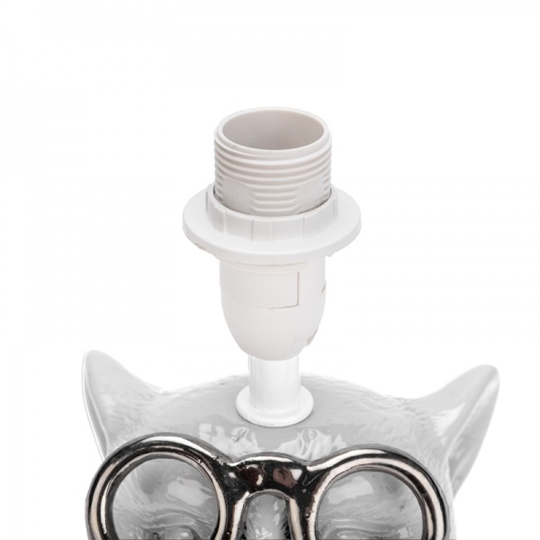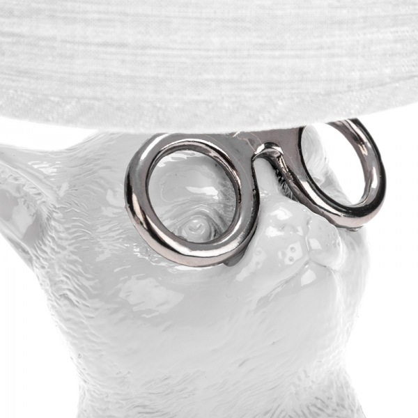 Светильник белого глянцевого цвета в форме кота в очках станет стильным дополнением интерьера и поднимет настроение своим ярким и необычным дизайном.