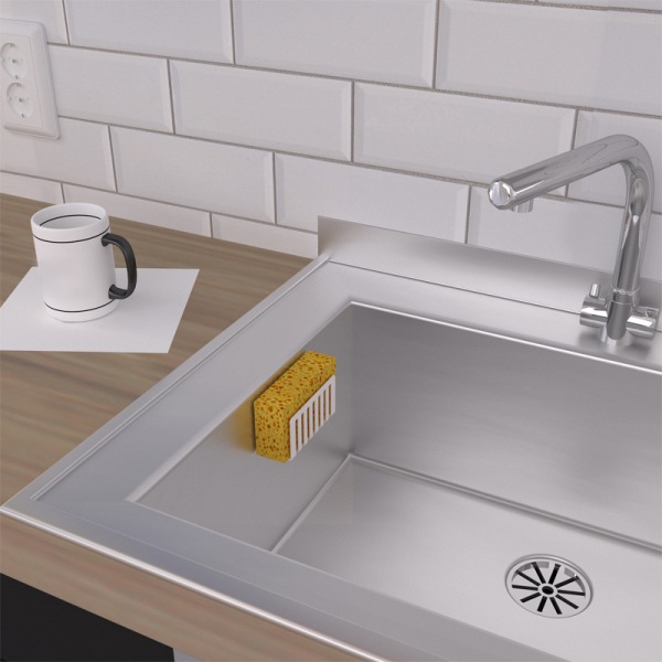 Изделие экономит пространство, способствует быстрому высыханию губок и позволяет избежать неприятного запаха.