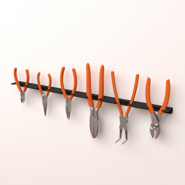 Держатель позволяет разместить бокорезы, кусачки, плоскогубцы, круглогубцы, тонкогубцы и длинногубцы, пассатижи, клещи, щипцы, зажимы, ручные пресс-клещи, переставные клещи и т. д.