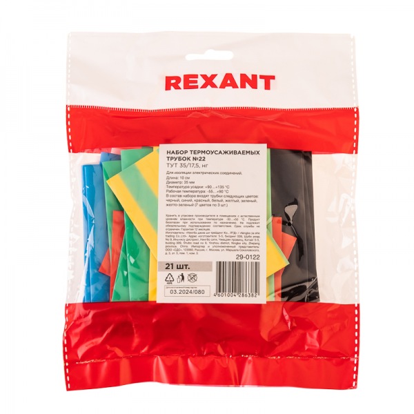 Купить Набор термоусаживаемых трубок №22 ТУТ нг 35/17,5мм, 7 цветов (упак. 21 шт. по 10см) Рексант в Москве или заказать с доставкой по России можно на нашем сайте СинтезБезопасности.ру. Здесь вы найдете описание, фото, технические характеристики и цену на Набор термоусаживаемых трубок №22 ТУТ нг 35/17,5мм, 7 цветов (упак. 21 шт. по 10см) REXANT.