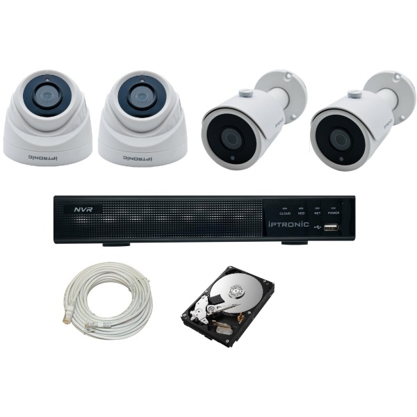 Комплект видеонаблюдения.Разрешение камер: 2Мп. Состоит из видеорегистратора, 2-х купольных и 2-х цилиндрических камеры. Предназначен для установки в доме или на даче. В комплекте также HDD и кабель для подключения.