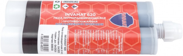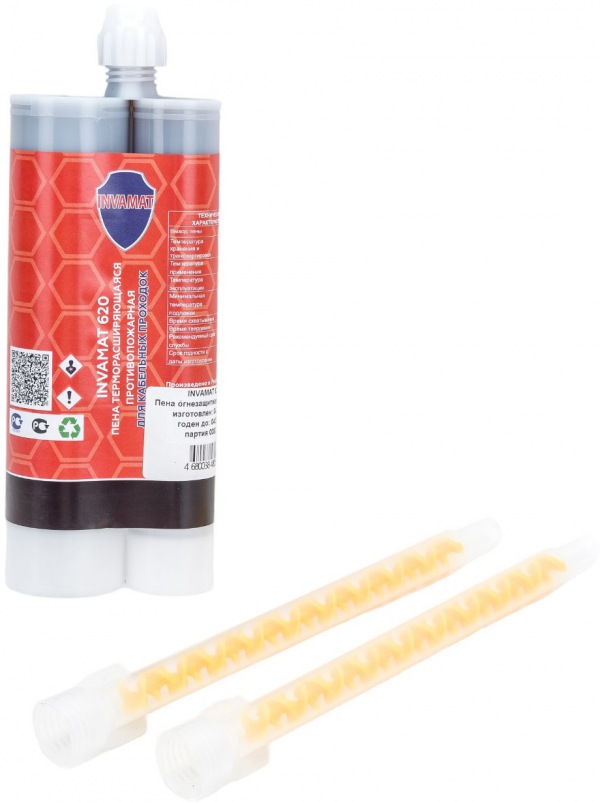 Монтажная терморасширяющаяся двухкомпонентная противопожарная пена INVAMAT 620 выход пены 4 л 1012 отвечает требованиям 123-ФЗ «ТЕХНИЧЕСКИЙ РЕГЛАМЕНТ О ТРЕБОВАНИЯХ ПОЖАРНОЙ БЕЗОПАСНОСТИ», ГОСТ Р 53310-2009 «Проходки кабельные, вводы герметичные и проходы шинопроводов. Требования пожарной безопасности. Методы испытаний на огнестойкость».
