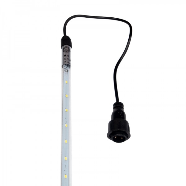 Гирлянда представляет собой готовый к использованию комплект: 10 пластиковых трубок и каучуковая шина, на которой расположены коннекторы с заглушками.