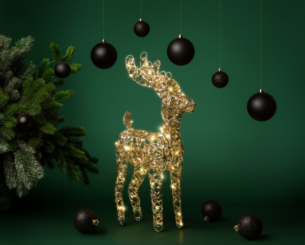 Металлическая 3D-фигура в форме Оленя – это стильный и выразительный декоративный элемент, который украсит интерьер к празднику. Фигура выполнена с особым вниманием к деталям и отличается качественным исполнением. Свечение огоньков наполняет пространство уютом и напоминает о теплых вечерах в кругу семьи и волшебной атмосфере зимних праздников.
