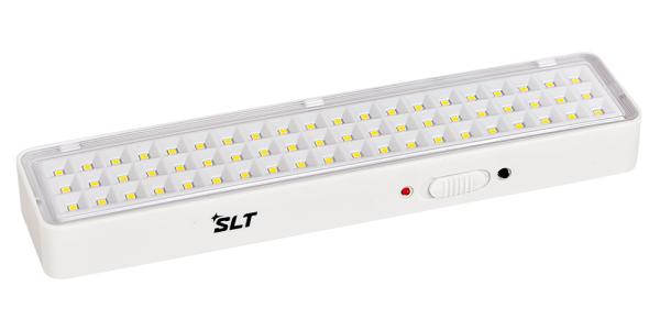 Аварийный светильник SLT (Количество светодиодов SMD - 60 штук, световой поток 252 люмен, непостоянный режим работы (DC), 187-242В, встроенный (несъёмный) литий-ионный аккумулятор напряжением 3,7В емкостью 2000 мАч, типоразмер 18650, защита аккумулятора от глубокого разряда и перезаряда, свечение до 6 часов, 250х57х27мм , масса 0,2кг, потребляемая мощность от сети 1 Вт, мощность источника света 3 Вт. 0…+40, IP41, гарантия 12 месяцев)