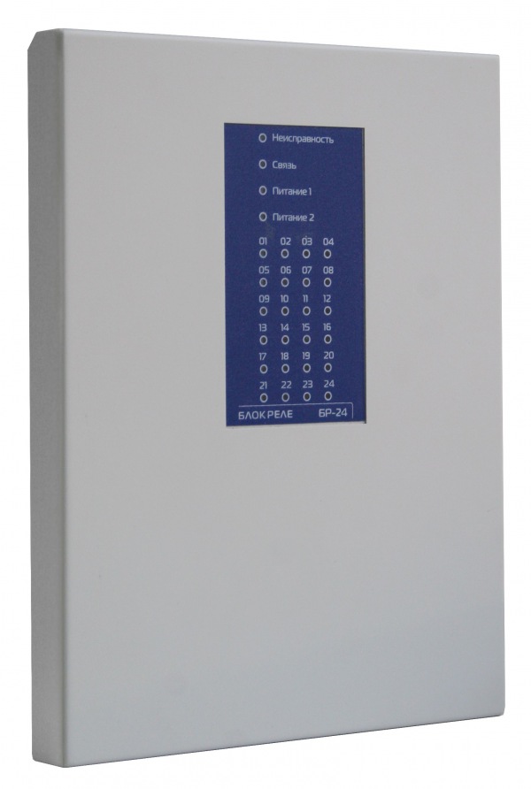 Внешний блок реле ПЦН БР-24 является компонентом приборов Гранит-16 и Гранит-24 и содержит 24 электромагнитных реле, каждое из которых является каналом коммутации (КК) прибора. Каждый канал коммутации, согласно командам прибора, формирует сигналы для пультов централизованного наблюдения либо управляет технологическим оборудованием и инженерными системами объекта. КК могут включаться по состоянию зоны либо по состоянию прибора. Каждому КК присвоено по очереди одно реле блока, в том порядке, как блоки реле были зарегистрированы в памяти прибора.