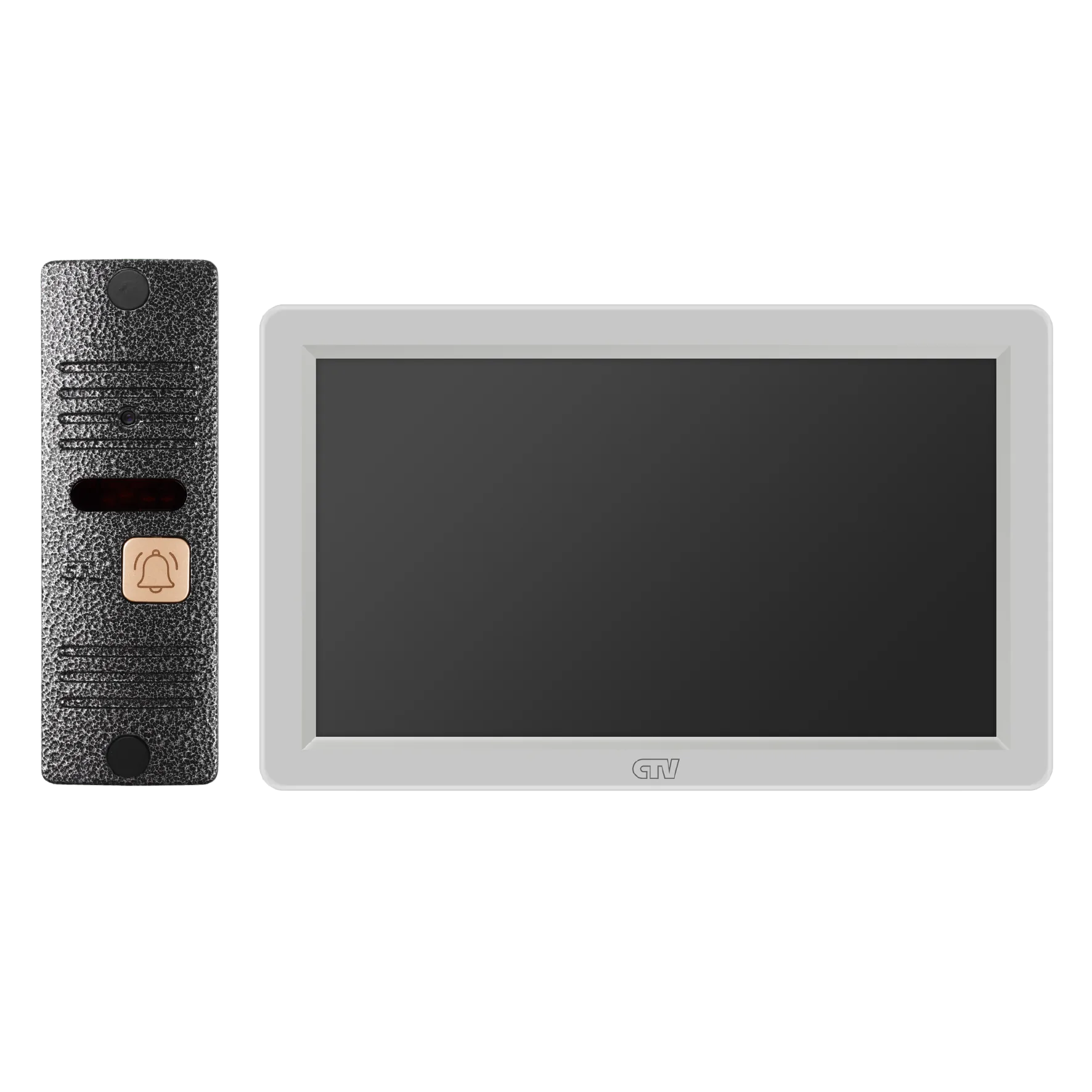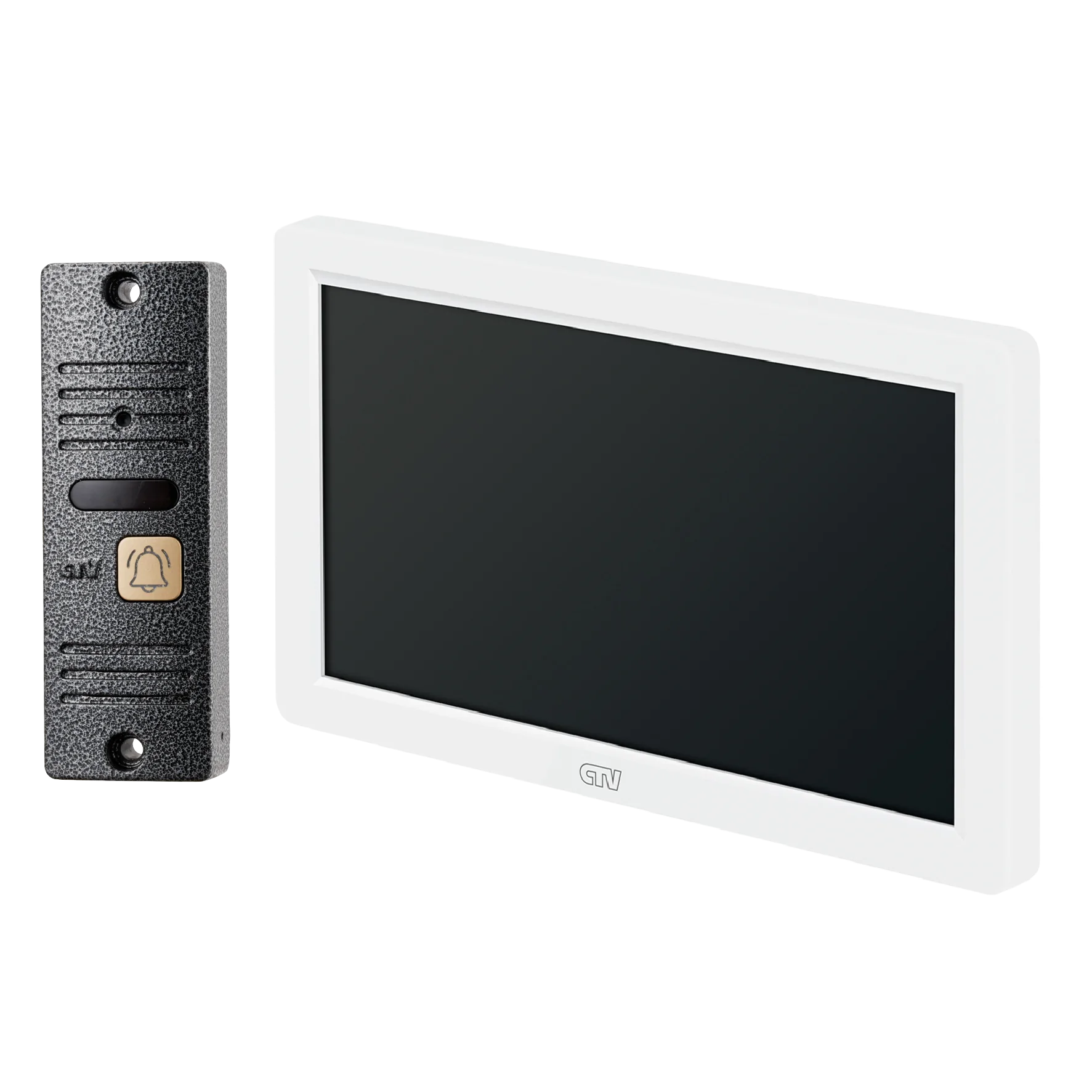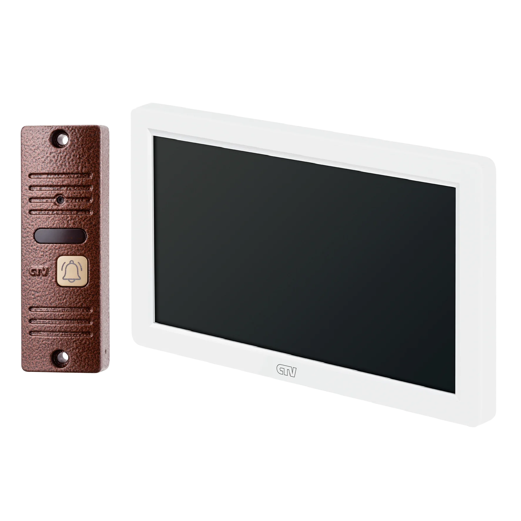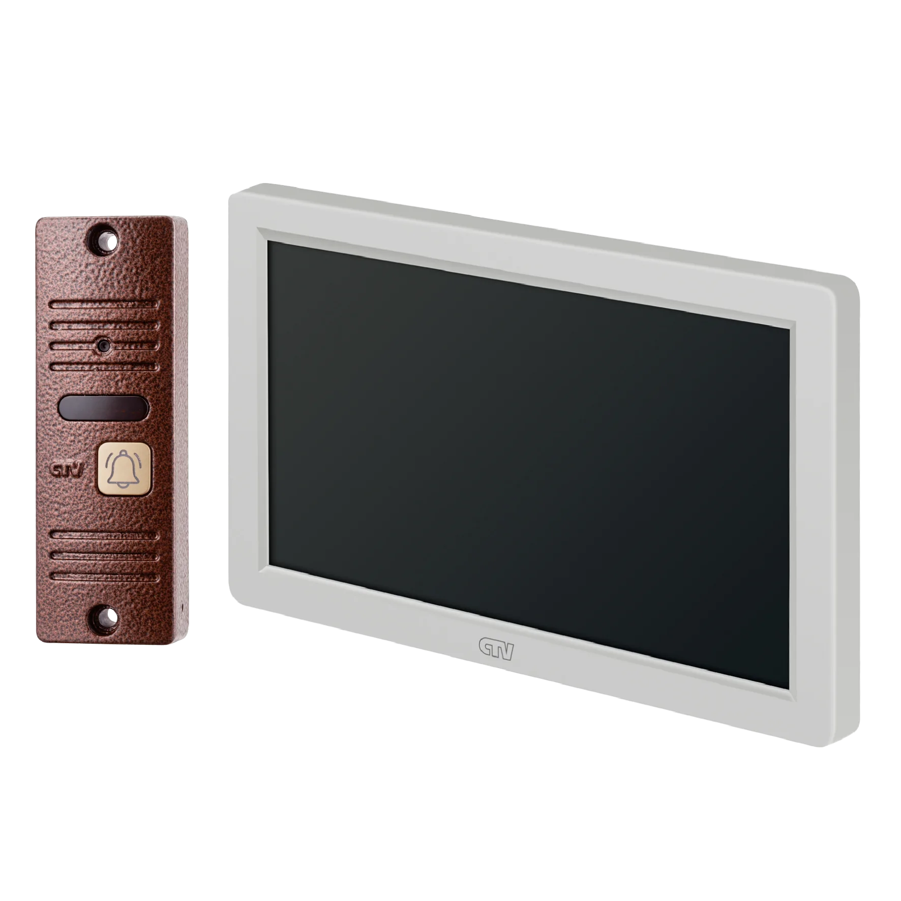 Комплект видеодомофона в одной коробке (вызывная панель CTV-D40 Plus и монитор CTV-M3722 Spectrum), поддержка формата Full HD, монитор с экраном 7", Hands free, технология Touch Screen для управления монитором, встроенная память, переключение стандартов AHD/CVBS, встроенный источник питания, подкл до 2 выз. панелей, цв. корпуса - белый/черный, панелей - бронза/серебро