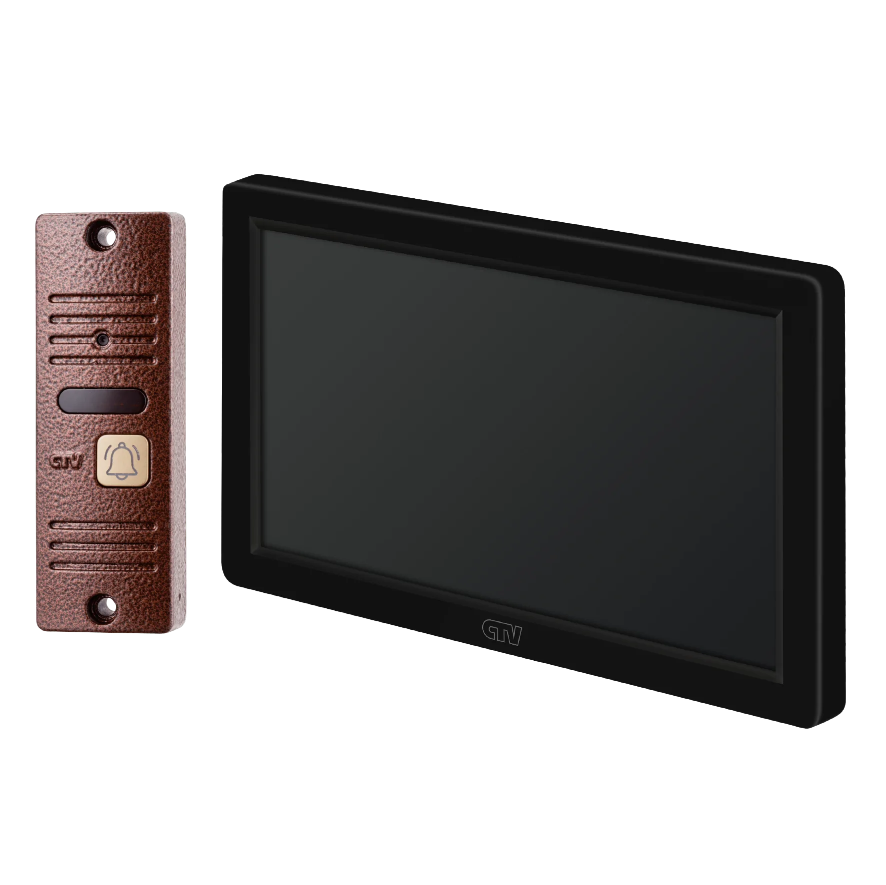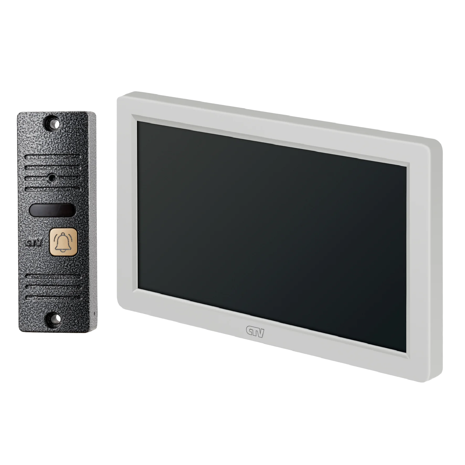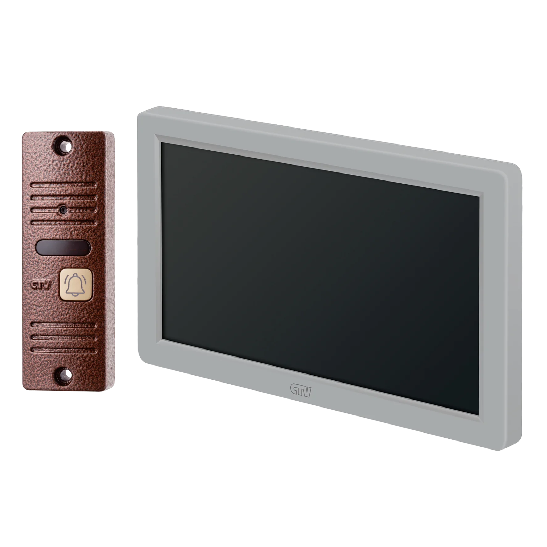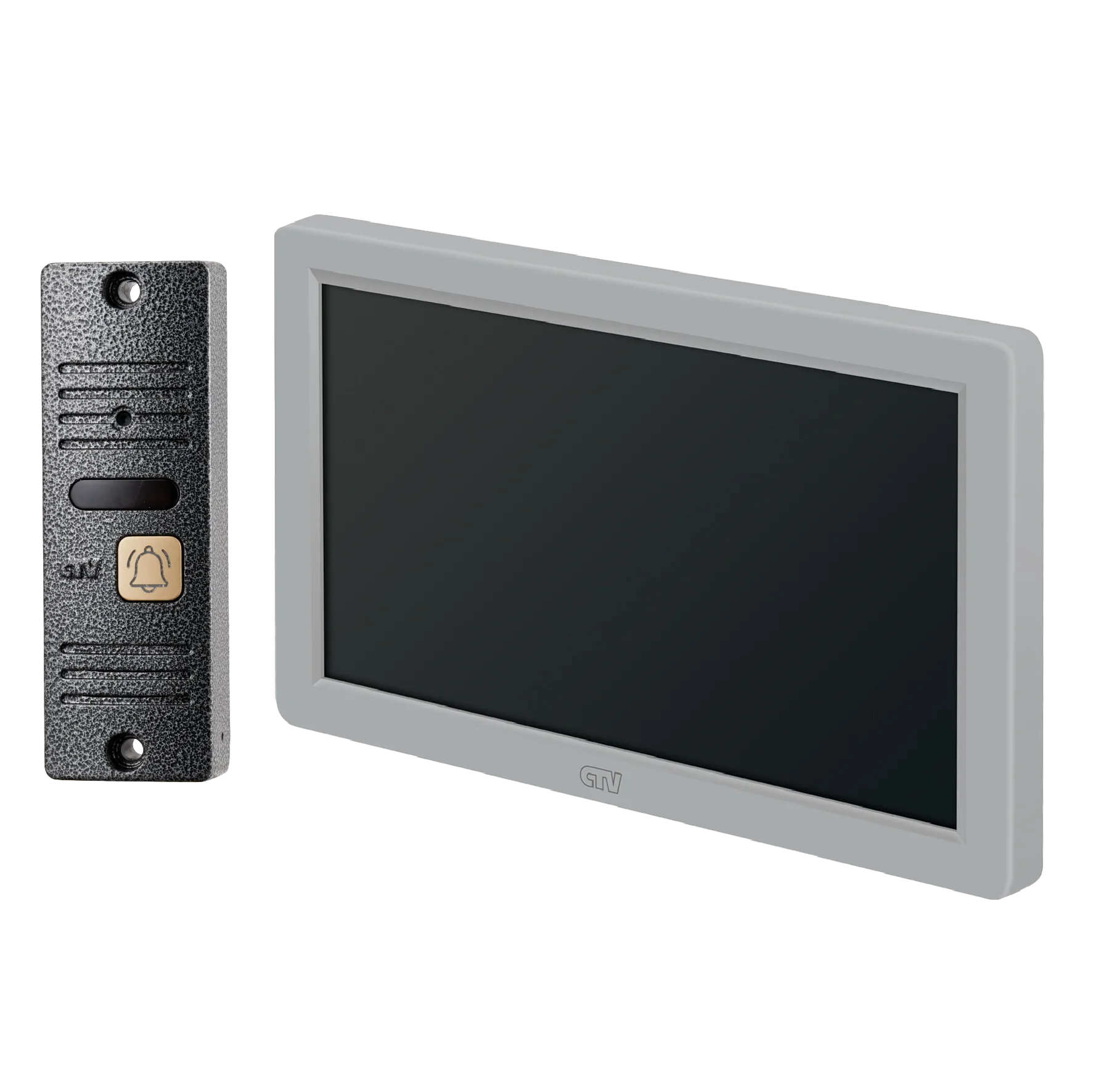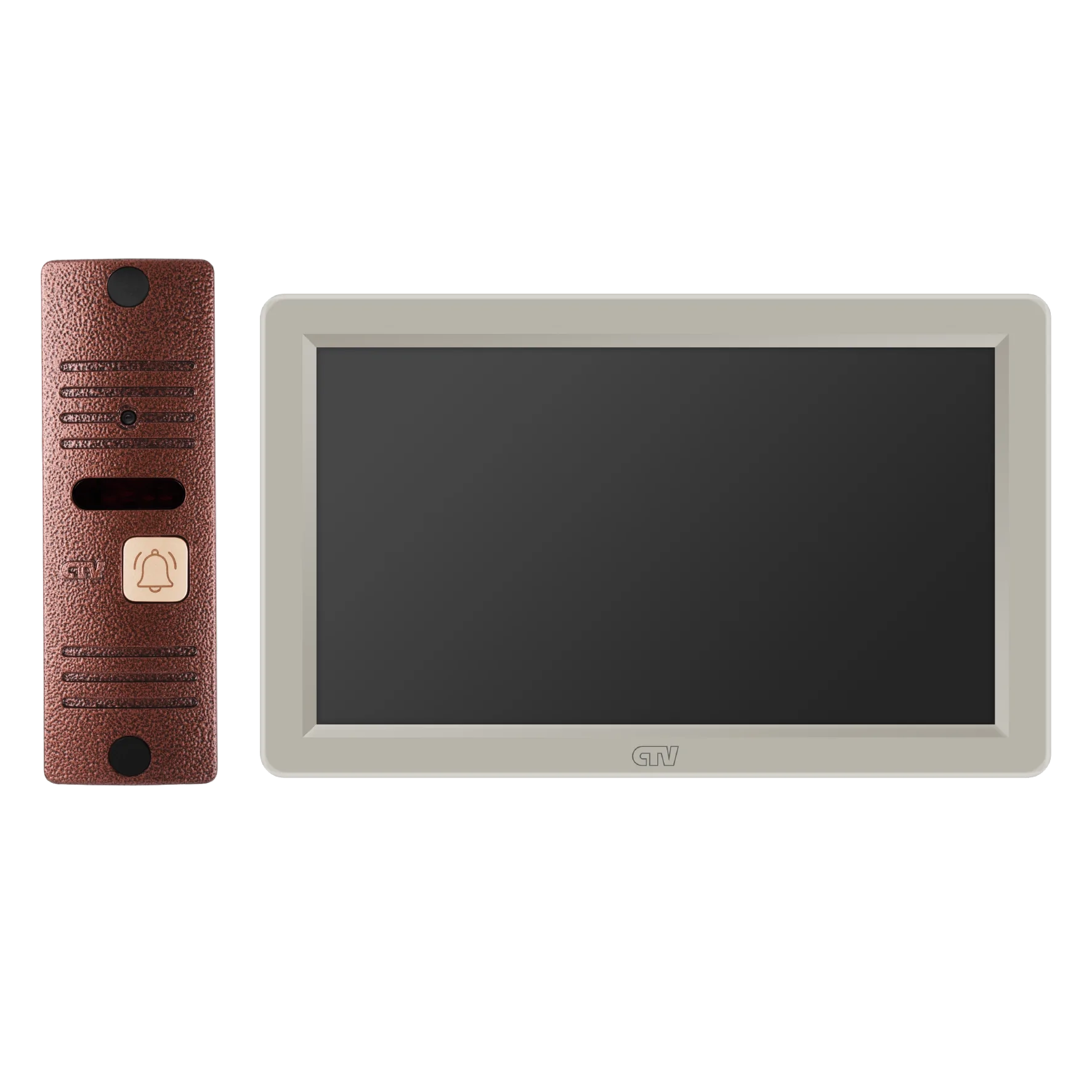 Комплект видеодомофона в одной коробке (вызывная панель CTV-D40 Plus и монитор CTV-M3722 Spectrum), поддержка формата Full HD, монитор с экраном 7", Hands free, технология Touch Screen для управления монитором, встроенная память, переключение стандартов AHD/CVBS, встроенный источник питания, подкл до 2 выз. панелей, цв. корпуса - белый/черный, панелей - бронза/серебро