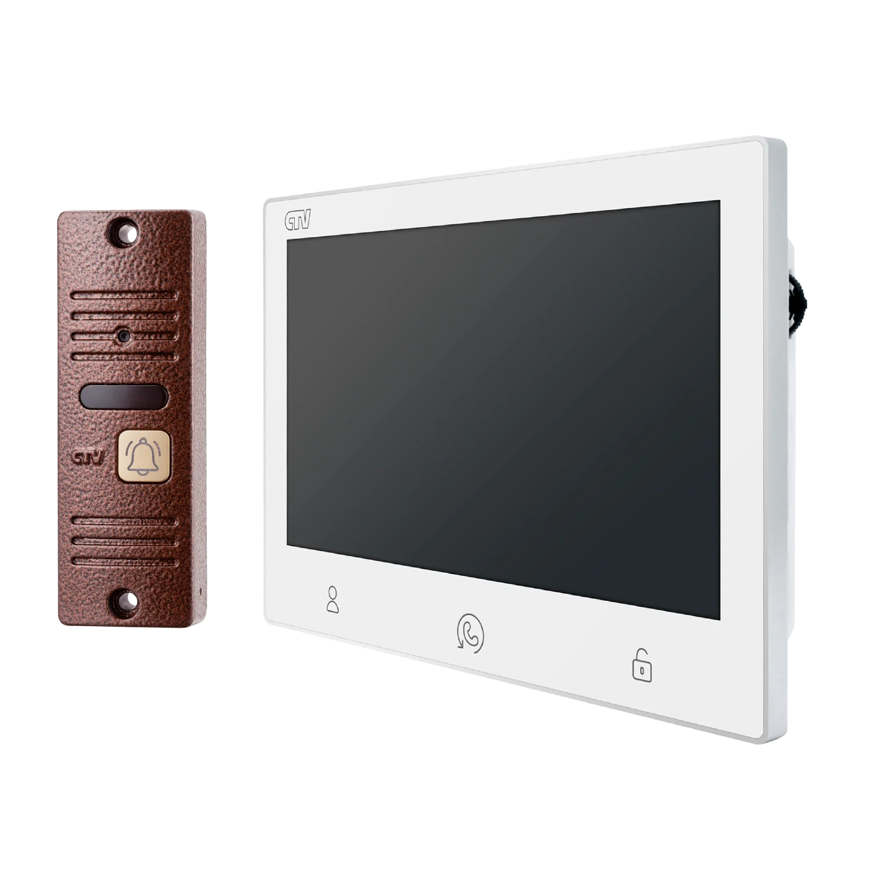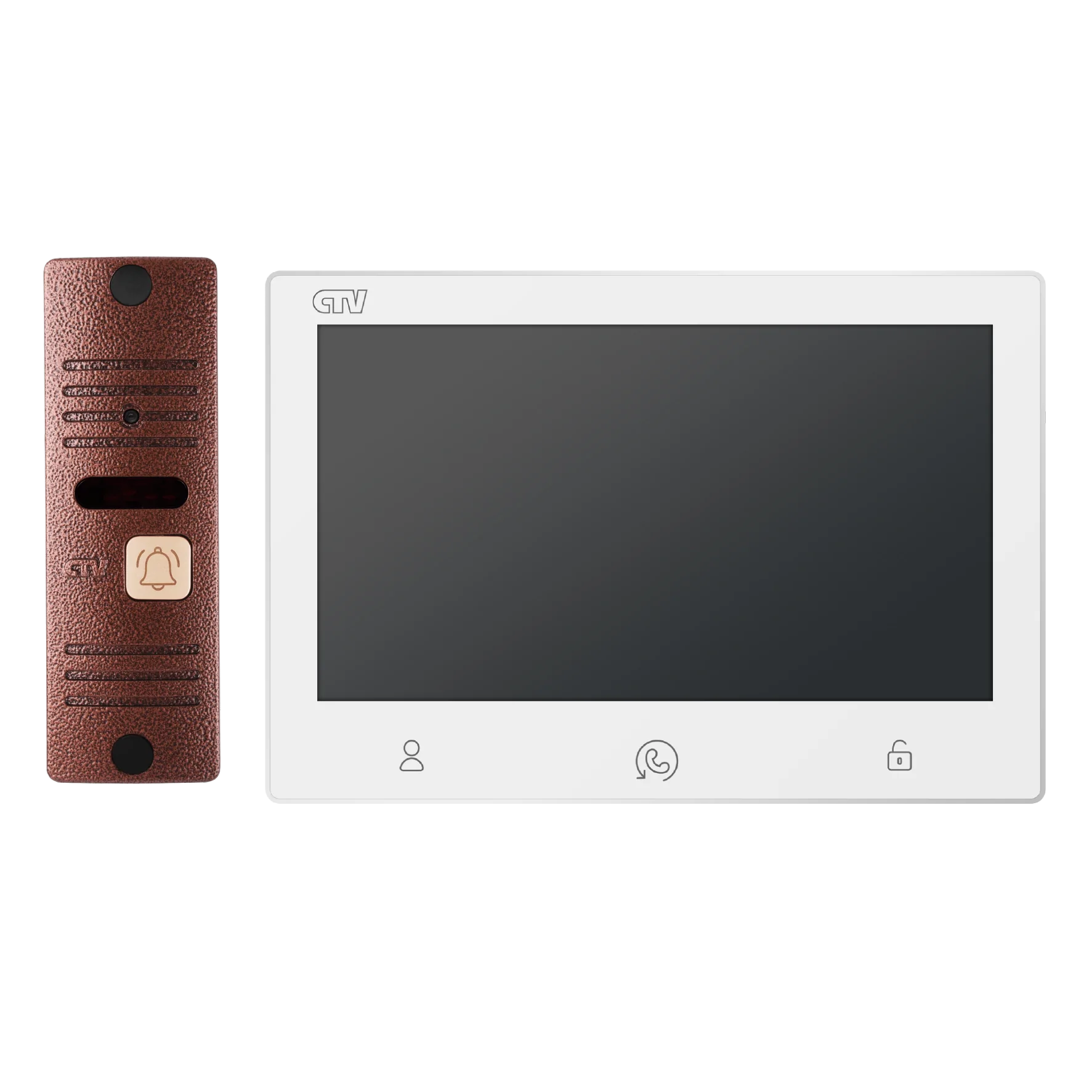 Комплект видеодомофона в одной коробке (вызывная панель CTV-D40 Plus и монитор CTV-M3713 Astra Plus), поддержка формата Full HD, монитор с экраном 7", Hands free, детектор движения, панель с сенсорным управлением "Easy buttons", встроенный слот для micro SD (до 128ГБ), переключение стандартов AHD, TVI, CVI и CVBS, встроенный источник питания, подкл до 2 выз. панелей и 6 мониторов, цв. корпуса - белый/черный, панелей - бронза/серебро