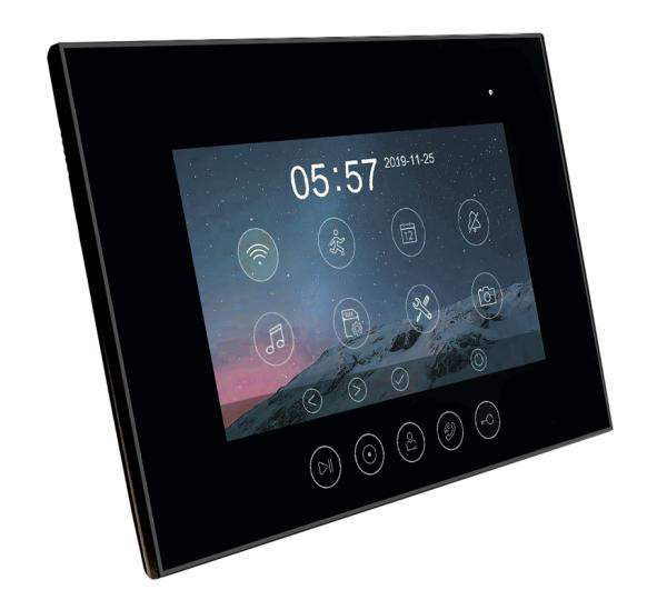 Монитор цветного видеодомофона 7 дюймов разрешение 1024х600, с поддержкой форматов AHD / TVI / CVI 1080р/720p/CVBS (PAL / NTSC) и отправкой уведомлений о вызове на смартфон через приложение "vhOme 2.2", сенсорные кнопки, hands free, подключение 2-х вызывных панелей, 2-х видеокамер, до 6-ти мониторов в системе (при использовании совместимых мониторов). Встроенная память на 50 фото или 6 видео. Запись фото или видео на microSD карту до 128 ГБ (в комплект не входит). Запись по детектору движения, по одному каналу. Питание: 220/15В, Габариты: 222х154х15мм.