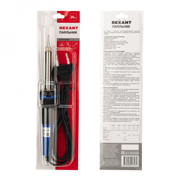 Купить Рексант Паяльник с керам.нагревателем,долговечное жало 220V/25Вт в Москве или заказать с доставкой по России можно на нашем сайте СинтезБезопасности.ру. Здесь вы найдете описание, фото, технические характеристики и цену на REXANT Паяльник с керам.нагревателем,долговечное жало 220V/25Вт .