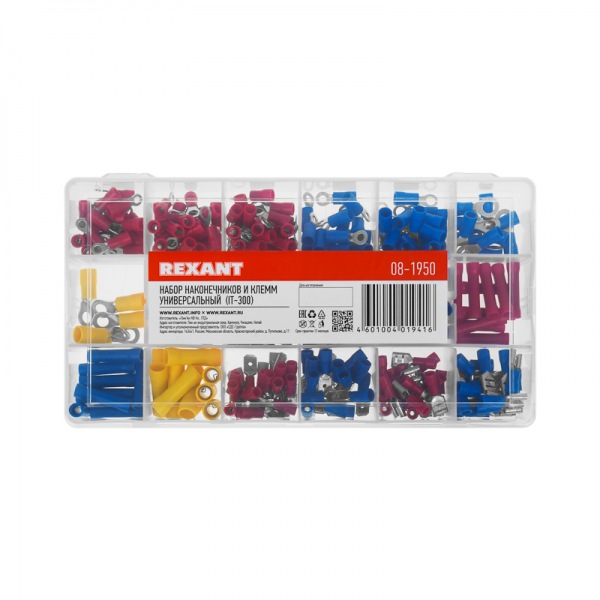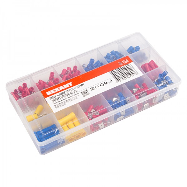 Набор наконечников и клемм универсальный (IT-300) REXANT предназначен для создания быстрого и качественного подключения различного электрооборудования и монтажа электросетей. Такой современный способ подготовки кабеля к соединению заменяет процесс облуживания или скрутки многожильных медных проводов, формируя целостное окончание кабеля с последующим подключением промышленного или бытового электрооборудования.