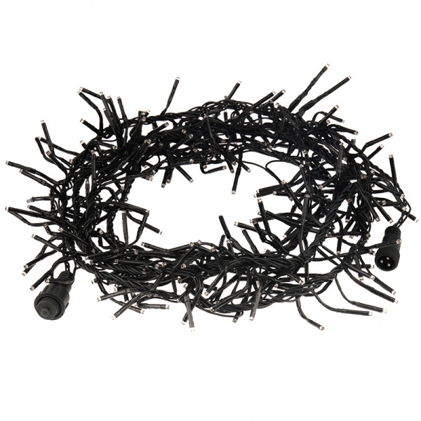 Данная гирлянда имеет длину 3 м, на которой равномерно расположено 288 диодов теплого белого цвета свечения.