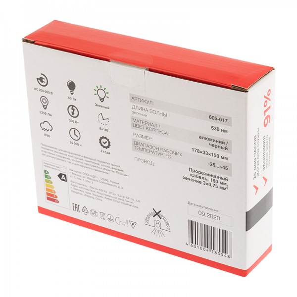 Высокая степень пылевлагозащищенности (IP65) позволяет установить прожектор не только в помещении, но и на улице.