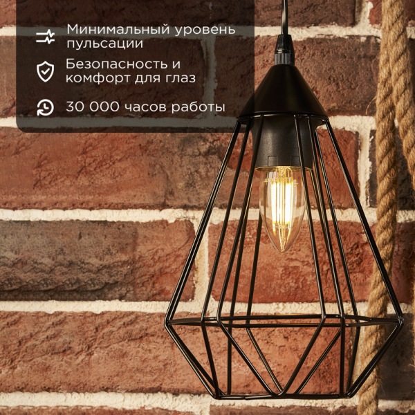 За счет распространения света во всех направлениях, филаментные лампочки REXANT потребляют еще меньше электроэнергии при более высокой яркости.