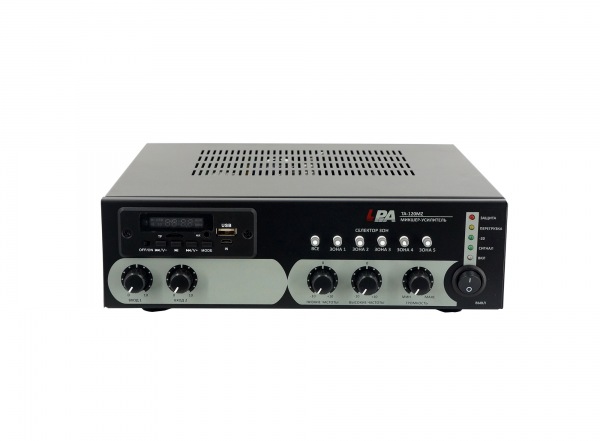 Микшер-усилитель, 120 Вт, MP3(USB/SD), FM-тюнер, фантомное питание, 5 зон