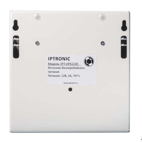 IPTRONIC IPT-UPS1220 - источник бесперебойного электропитания 12В в металлическом боксе. Номинальный выходной ток составляет 2А. Обеспечивает автоматический переход на питание от аккумулятора при отсутствии напряжения сети.