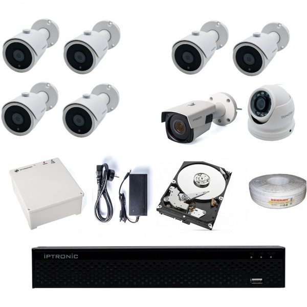 Комплект уличного аналогового видеонаблюдения IPTRONIC на 8 камер. Разрешение камер: 2Мп. Состоит Из 6 камер для уличного обзора территории + 1 камеры для распознавания лиц на входе на территорию + 1 миниатюрная камера для распознавания лиц (можно ставить снаружи над входной дверью или внутри дома). Хранение записей на 2 недели. С резервным питанием на 1 час