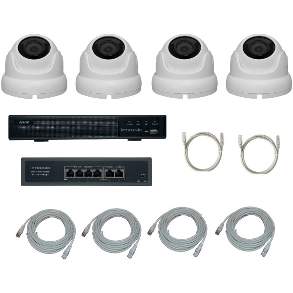 Готовый комплект видеонаблюдения. Разрешение камер: 2Мп. Состоит из:; Регистратор без PoE - 1 шт.; Камера с PoE, купольная уличная - 4 шт.; коммутатор PoE - 1 шт.; шнур соединительный для камеры - 1 шт.; шнур регистратор-коммутатор - 1 шт.; шнур коммутатор-роутер - 1 шт.