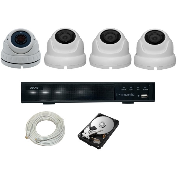 Комплект видеонаблюденя. Разрешение камер: 3Мп. Состоит из видеорегистратора с 4-мя купольными камерами. Предназначен для установки на даче, в офисе или магазине. В комплекте также HDD и кабель для подключения к сети интернет.