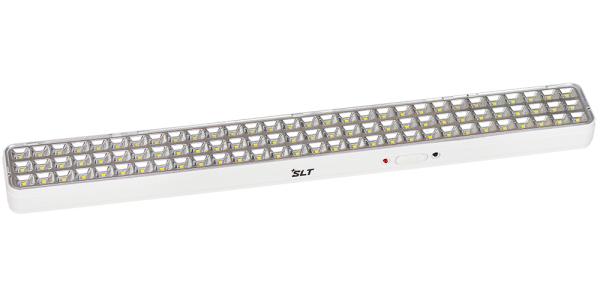 Аварийный светильник SLT (Количество светодиодов SMD - 90 штук, световой поток 441 люмен, непостоянный режим работы (DC), 187-242В, один сменный и один встроенный (несъёмный) литий-ионные аккумуляторы напряжением 3,7В емкостью 2000 мАч каждый, типоразмер 18650, защита аккумулятора от глубокого разряда и перезаряда, свечение до 8 часов, 480х55х30мм , масса 0,36кг, потребляемая мощность от сети 1,6 Вт, мощность источника света 4,3 Вт. 0…+40, IP41, гарантия 12 месяцев)