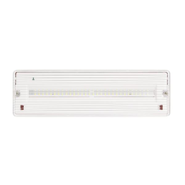 Аварийный светильник SLT (Количество светодиодов SMD - 30 штук, световой поток 280 люмен, постоянный и непостоянный режим работы (AC/DC), 187-242В, встроенный литий-железо-фотфатный аккумулятор напряжением 3,2В емкостью 1800 мАч, типоразмер 231300, защита аккумулятора от глубокого разряда и перезаряда, свечение от аккумулятора до 3 часов, 352х110х68мм , масса 0,4кг, потребляемая мощность от сети 4,5 Вт. 0…+40, IP65. Гарантия 3 года)