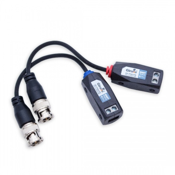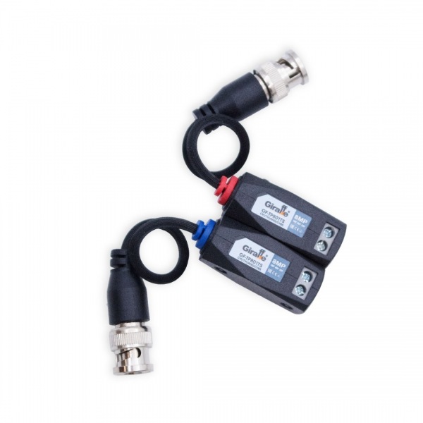 Комплект (2 шт.): Одноканальный пассивный приемо-передатчик по витой паре. Передача видеосигнала CVBS и HD-AHD/HD-CVI/ HD-TVI - до 8 Мп. Защита от перенапряжения. BNC x 1 на гибком кабеле 10 см; Клеммная колодка: 2 pin «под винт»||360