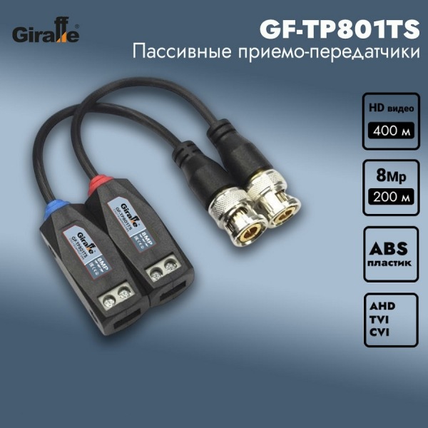 Купить Приемопередатчик Жираф GF-TP801TS (Одноканальный пассивный приемо-передатчик по витой паре (комплект 2 шт)) в Москве или заказать с доставкой по России можно на нашем сайте СинтезБезопасности.ру. Здесь вы найдете описание, фото, технические характеристики, документацию и цену на Giraffe GF-TP801TS.