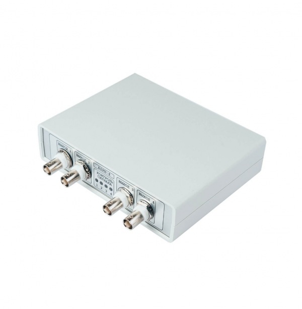 Устройство для защиты протяженных несимметричных линий передачи видеосигнала от наведенных напряжений, вызванных эл./магн. импульсами высоких энергий. Содержит устройство АРУ видеосигнала по синхросигналу, компенсирует затухание видеосигнала в линии. Индикация наличия видеосигнала. 4-канала, напряжение ограничения 7.3В. Импульсный разрядный ток 8/10мк/с.-10кА. Диапазон АРУ +/- 6дБ. Питание 12В. Т раб. (-40...+50)°С. Габариты: 110х138х35 мм.||2970