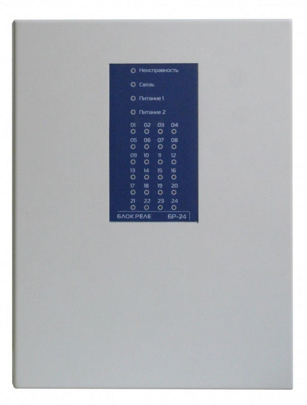 Внешний блок реле ПЦН БР-24 является компонентом приборов Гранит-16 и Гранит-24 и содержит 24 электромагнитных реле, каждое из которых является каналом коммутации (КК) прибора. Каждый канал коммутации, согласно командам прибора, формирует сигналы для пультов централизованного наблюдения либо управляет технологическим оборудованием и инженерными системами объекта. КК могут включаться по состоянию зоны либо по состоянию прибора. Каждому КК присвоено по очереди одно реле блока, в том порядке, как блоки реле были зарегистрированы в памяти прибора.