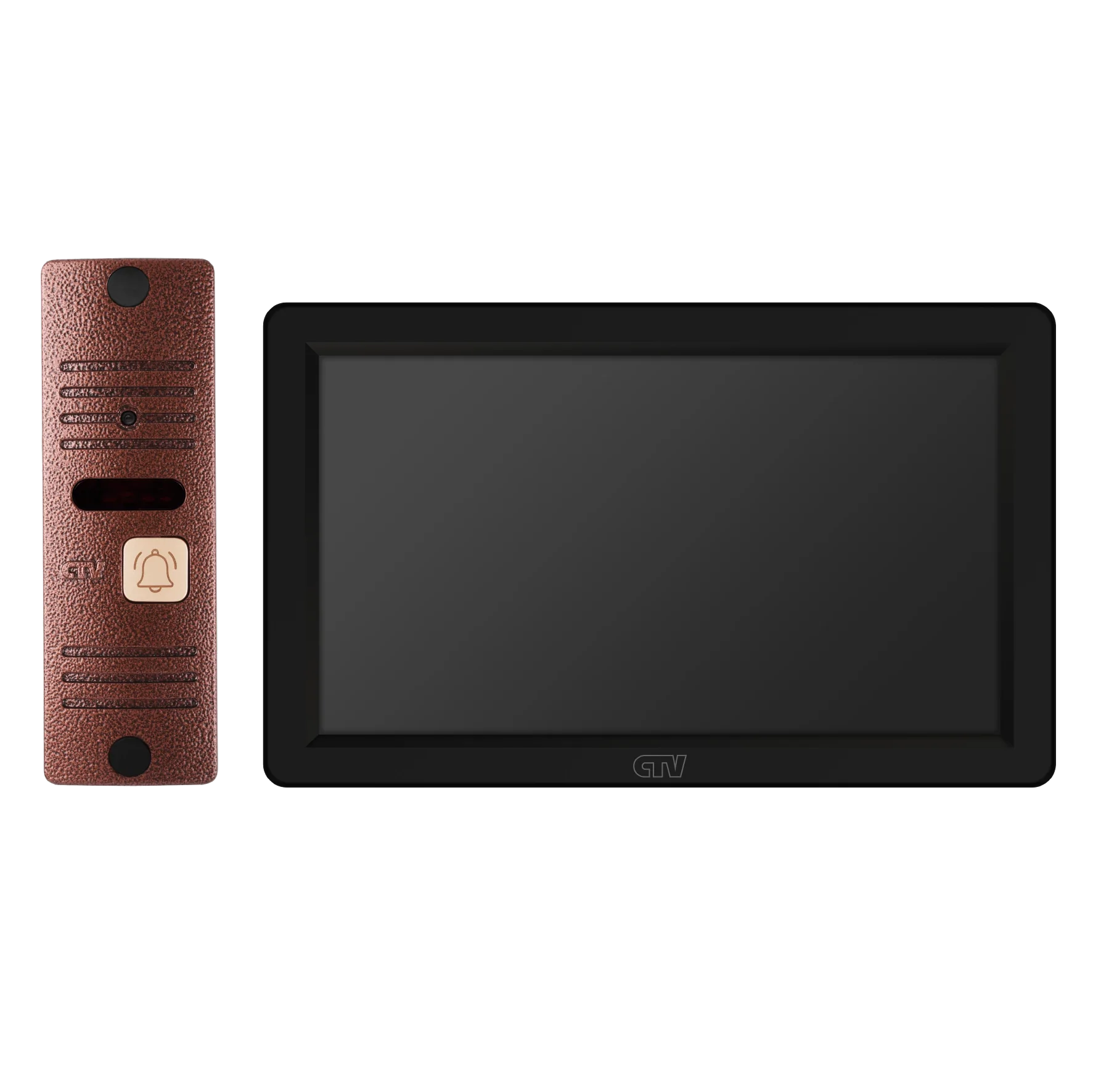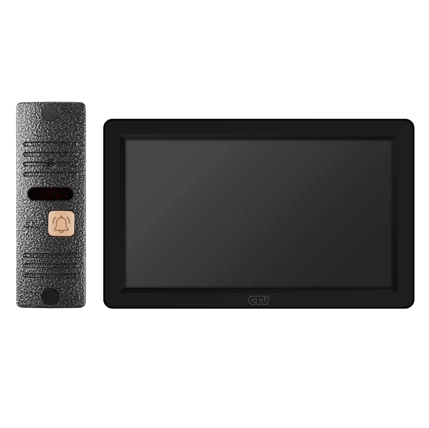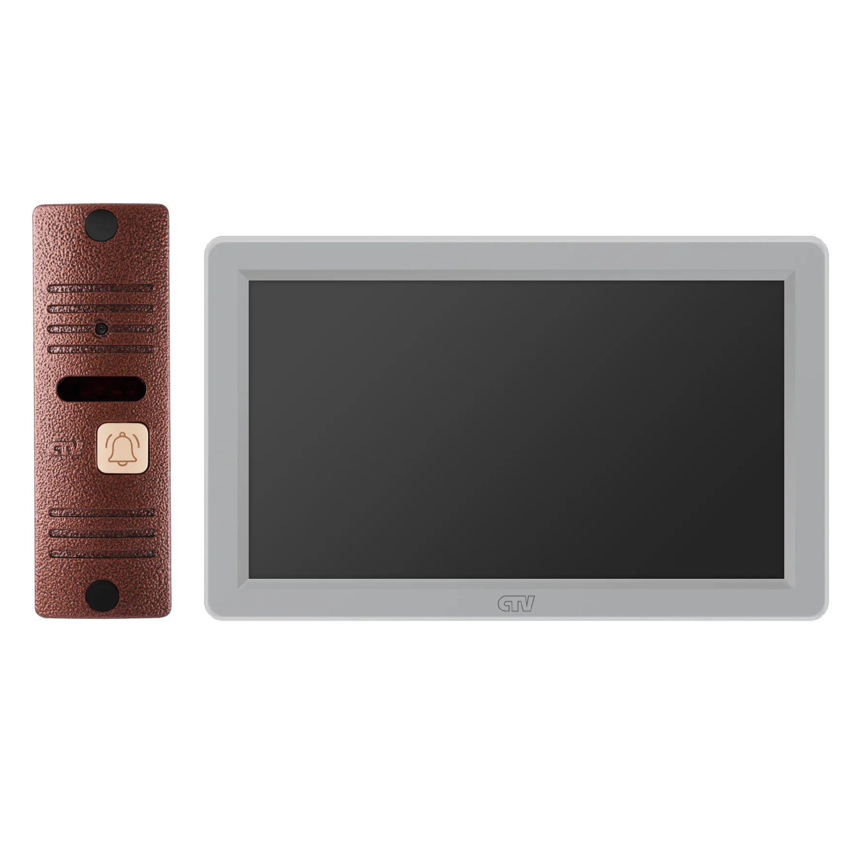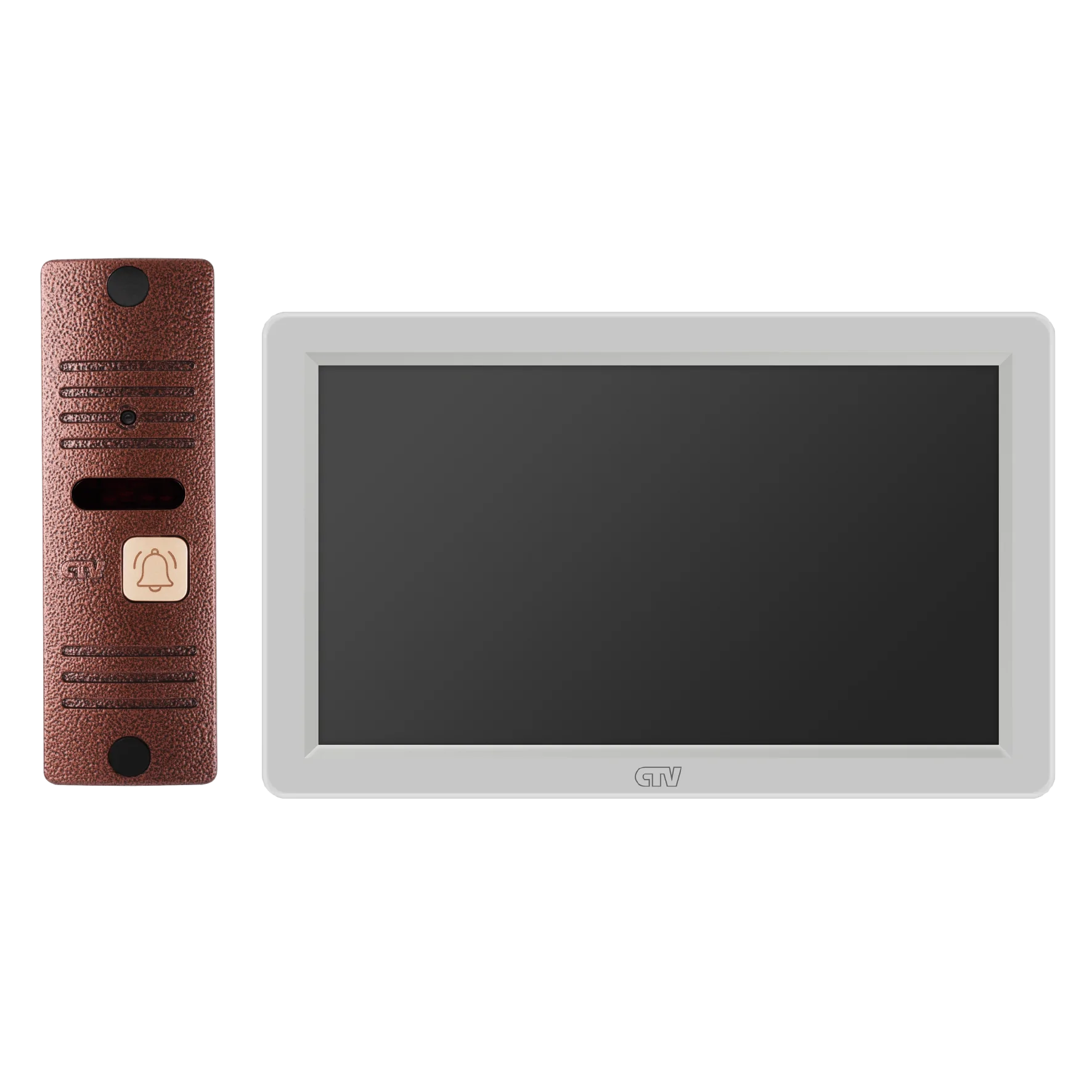 Комплект видеодомофона в одной коробке (вызывная панель CTV-D40 Plus и монитор CTV-M3722 Spectrum), поддержка формата Full HD, монитор с экраном 7", Hands free, технология Touch Screen для управления монитором, встроенная память, переключение стандартов AHD/CVBS, встроенный источник питания, подкл до 2 выз. панелей, цв. корпуса - белый/черный, панелей - бронза/серебро
