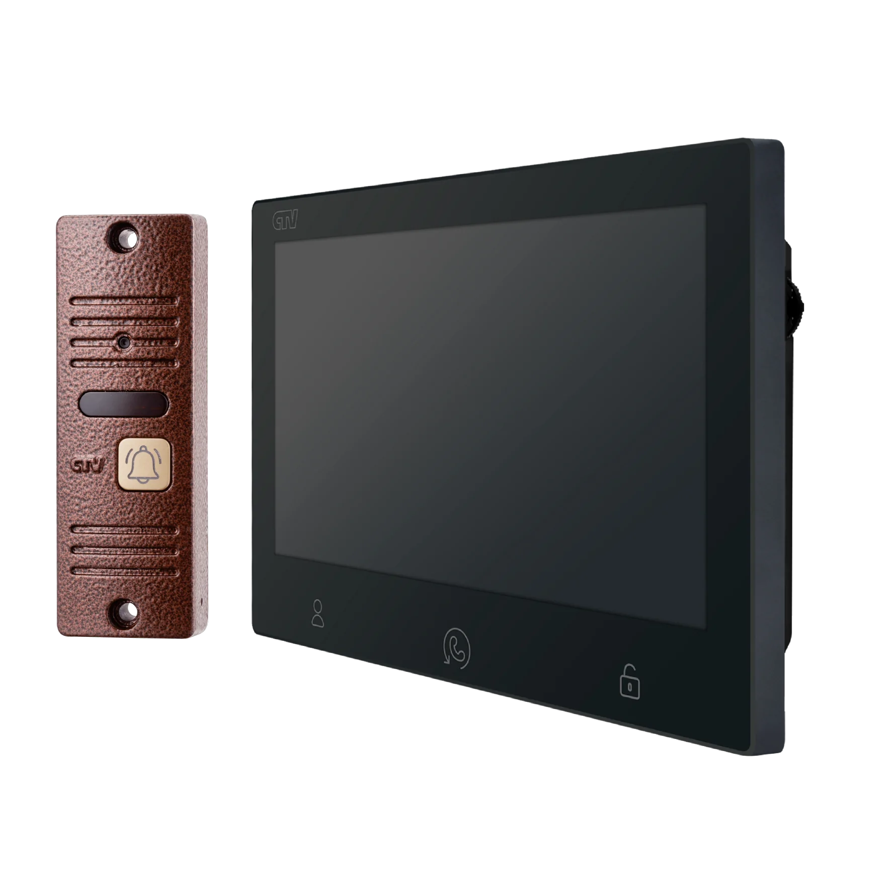 Комплект видеодомофона в одной коробке (вызывная панель CTV-D40 Plus и монитор CTV-M3713 Astra Plus), поддержка формата Full HD, монитор с экраном 7", Hands free, детектор движения, панель с сенсорным управлением "Easy buttons", встроенный слот для micro SD (до 128ГБ), переключение стандартов AHD, TVI, CVI и CVBS, встроенный источник питания, подкл до 2 выз. панелей и 6 мониторов, цв. корпуса - белый/черный, панелей - бронза/серебро