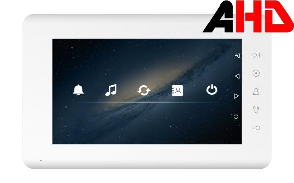 Адаптированный для координатных подъездных систем монитор цветного видеодомофона TFT LCD 7" 800x480, AHD/CVI/TVI/CVBS, Hands-Free, 1 подъездная вызывная панель, 1 индивидуальная вызывная панель, 2 камеры. Питание 220В. Габариты 205х128х18 мм