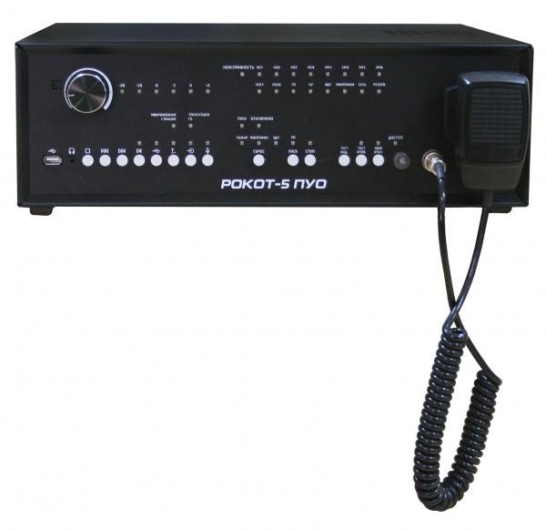 Система состоит из прибора управления оповещением «Рокот-5», усилителя мощности «Рокот-5 УМ», микрофонной станции «Рокот-5 МС» и акустических систем АС-4, АС-4-2, АС-5.