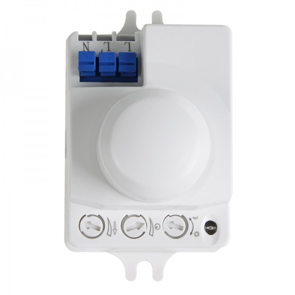 Микроволновый датчик движения излучает высокочастотные электромагнитные волны (частота волн может быть различной в зависимости от производителя, обычно она составляет 5,8 ГГц), которые отражаясь от окружающих объектов регистрируются сенсором и в случае обнаружения малейших изменений отраженных электромагнитных волн, микропроцессор устройства приводит в действие заложенную в него функцию. Данный датчик предназначен для монтажа как на потолок, так и на стену.