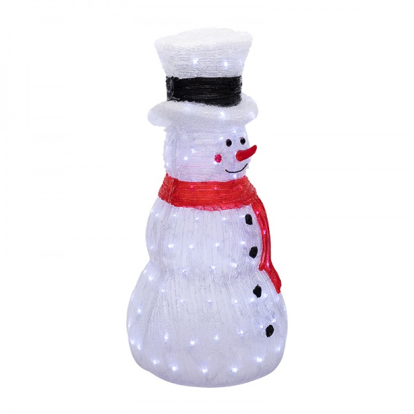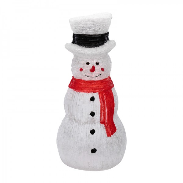Акриловая светодиодная фигура NEON-NIGHT «Снеговик в шляпе» высотой 72 см, светящаяся более чем 160 яркими диодами, выполнена по специальной технологии нанесения акрила. Она позволит вам создать ту самую, настоящую новогоднюю атмосферу и принести сотни радостных улыбок.