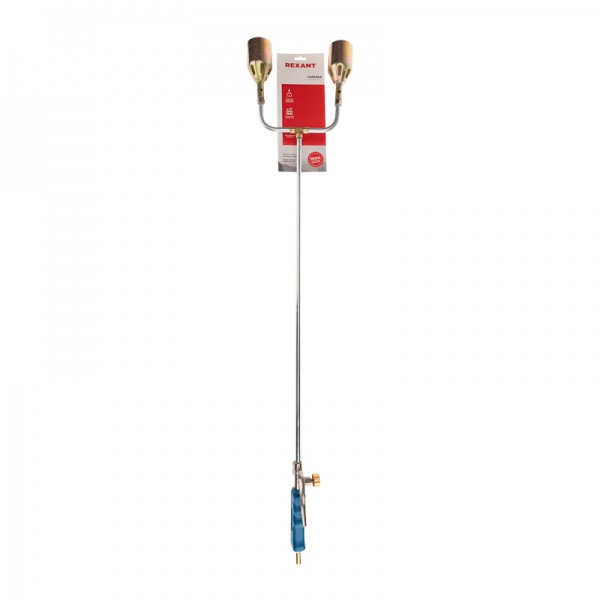 Горелка кровельная REXANT ГВ2-1000Р – газовая горелка с 2 соплами, вентилем и рычагом для нагрева битумных и иных материалов при проведении гидроизоляционных работ, обжига и очистки металлических поверхностей.