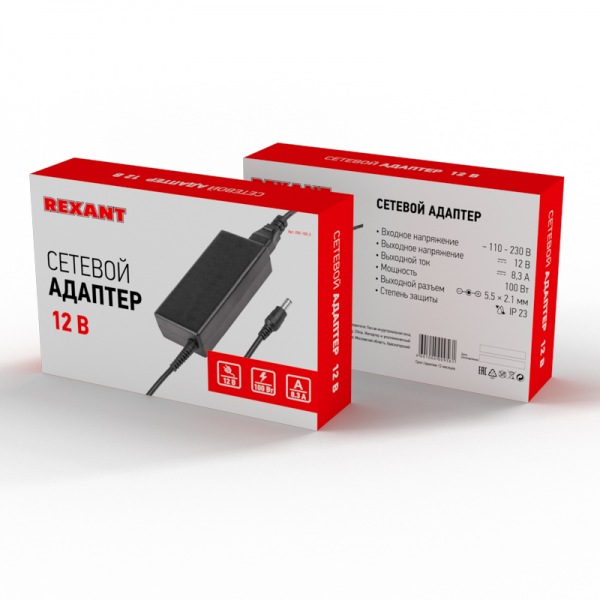 Купить Источники питания для светодиодных лент Рексант Источник питания 110-220 V AC/12 V DC 9 А 100 W с DC разъемом подключения 5.5х2.1, без влагозащиты (IP23) в Москве или заказать с доставкой по России можно на нашем сайте СинтезБезопасности.ру. Здесь вы найдете описание, фото, технические характеристики, документацию и цену на REXANT Источник питания 110-220 V AC/12 V DC 9 А 100 W с DC разъемом подключения 5.5х2.1, без влагозащиты (IP23).