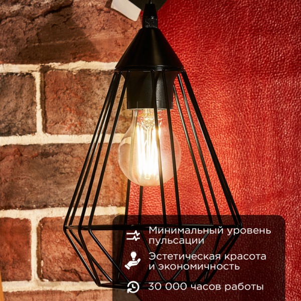 За счет распространения света во всех направлениях, филаментные лампочки REXANT потребляют еще меньше электроэнергии при более высокой яркости.